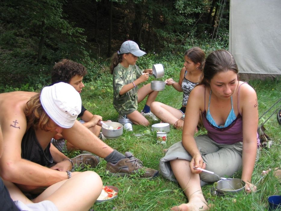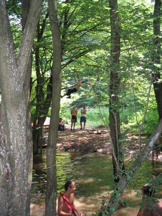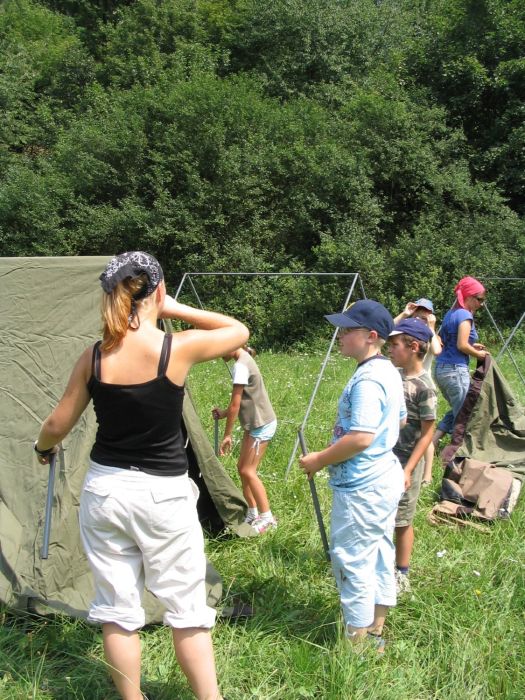 Keďže bolo strašne teplo robili sme si prestávky. Keď bol posledný stan hotový šli sme sa schladiť do potoka.