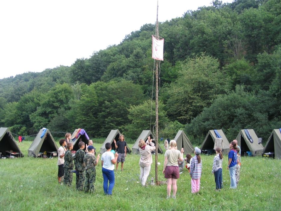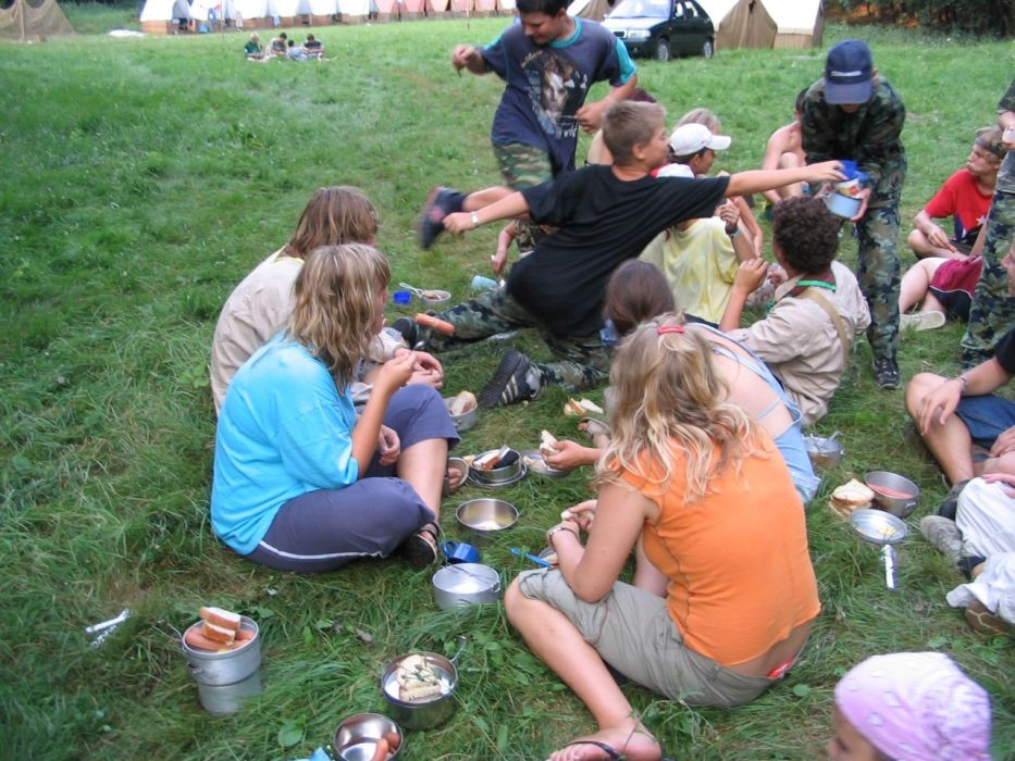 Nedeľa bola tiež super. Ráno bola rozcvička, nástup upratovanie stanov.