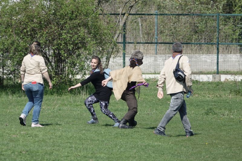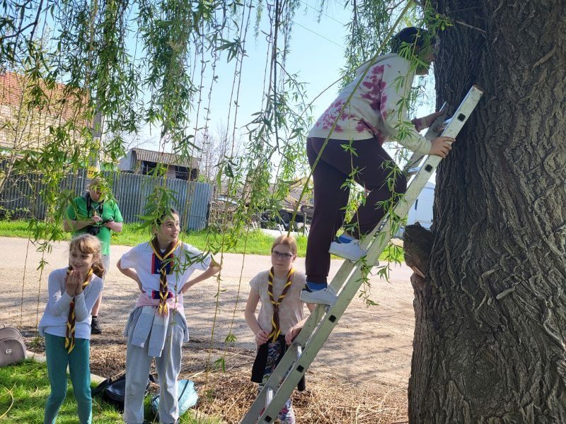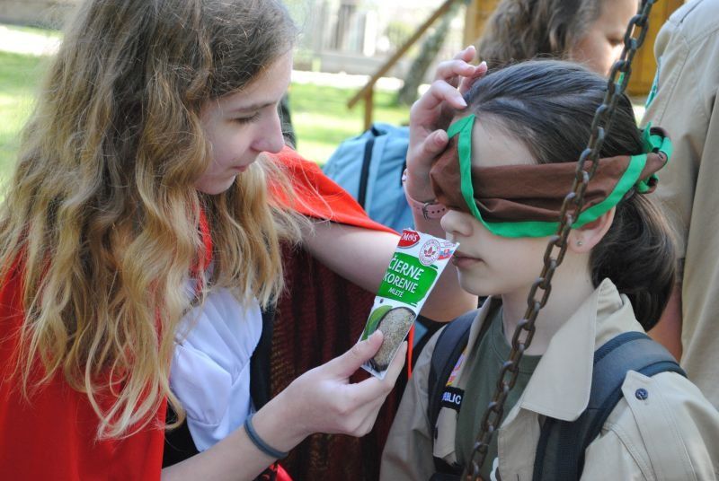 Po zvládnutí úloh a chutnom obede všetkých potešili pozvaní hostia - kynologická záchranárka a pátrači, ktorí hľadajú stratené osoby. Okrem psíkov priniesli aj rôznu techniku, pomocou ktorej hľadajú nezvestných ľudí. Najskôr všetkým predviedli, ako podľa čuchu psík Sammy našiel zamaskovaného figuranta. Potom deťom predviedli pátranie pomocou dronu s termokamerou a nakoniec sme sa rozhýbali, keď sme vytvorili pátraciu rojnicu. Všetci boli veľmi milí a trpezlivo odpovedali na zvedavé otázky mladších aj starších skautov.