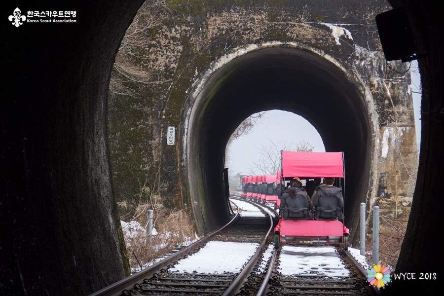 Po týchto dvoch dňch nabitých spoznávaním sme sa presunuli na letisko Incheon, kde nás spolu s ostatnými účastníkmi - skautmi z celého sveta vyzdvihol autobus, ktorý nás zobral do Elysian rezortu, kde sa Konal WYC2018. Elysian rezort je miestne lyžiarske stredisko nedaľeko mesta Chuncheon a vzdialené vzdušnou čiarou okolo 50 kilometrov od najstráženejšej hranice sveta. Po našom príchode do hotela sme sa všetci zišli v hlavnej sále, kde sme boli rozdenelí do izieb a kde sme od KSA (Korean Scout Asociacion) dostali uvítacie darčeky. Bol to taký zimný balíček, kedže sa na WYC zúčastnili aj exotické a tropické krajiny Strednej Ameriky a Afrického kontinentu.