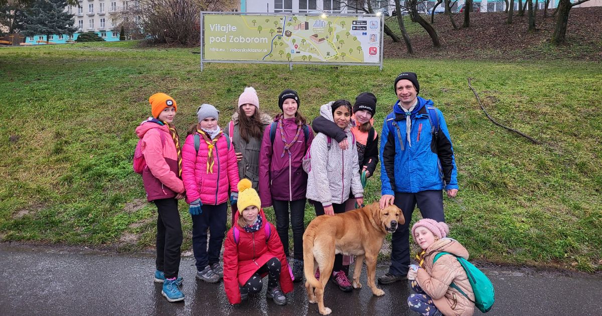 Každý bol už na vrchole Zobor. No málokto sa zamyslel ako vzniklo jeho meno a podľa čoho. Družiny Salamandry a Piškóty na prechádzke pod Zoborom spoznali niekoľko teórií. Podľa legendy vojvoda Zubur položil život pri obrane mesta Nitry pred útočníkmi. My sme si zahrali hru Hrad. Je to bojovka pri ktorej jedna skupinka bráni svoje územie pred utočníkmi. Útočníkov bolo veľa ale Omo a Trieska mali sily za desiatich tak to skončilo nerozhodne. Podľa druhej hypotézy je názov Zobora podľa zvieraťa. Deti hádali že to je ťava, delfín, pes Riki, zubor. Údajne to je podľa Zubra hrivnatého ktorý žil v zoborských lesoch. Tak sme si zahrali hru Zvieratká. Skupinky po dvoch , troch alebo štyroch vytvorili jedno zviera. Od blchy, stonožky, veľryby až po mamuta. Tiež je možnosť že ho pomenovali mnísi z kláštora sv. Hypolita v Nitre. My sme sa pozreli na ruiny ktoré z kláštora ostali. Dnes sa o túto pamiatku starajú šikovní ľudia a pridali tam pár vecí aj pre deti. Myslím že aj keď trošku kvapkalo tak sa všetkým páčilo vrátane štvornohého nováčika Rikiho.