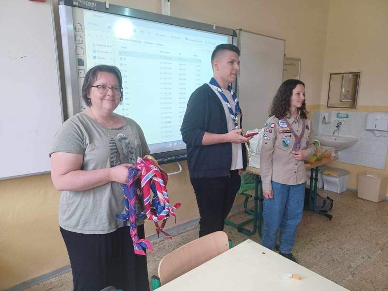 Pár dní predtým sa darilo našim rangerom Trieska a Slanina na Zš Nitrianske Hrnčiarovce v spolupráci s Regionálne centrum podpory učiteľov pre okresy Nitra a Zlaté Moravce. Rozprávali deviatakom o ceste na svetové jamboree v Južnej Kórei. Nielen rozprávali, ale im dali Kóreu aj ochutnať a pocítiť. Palec hore.