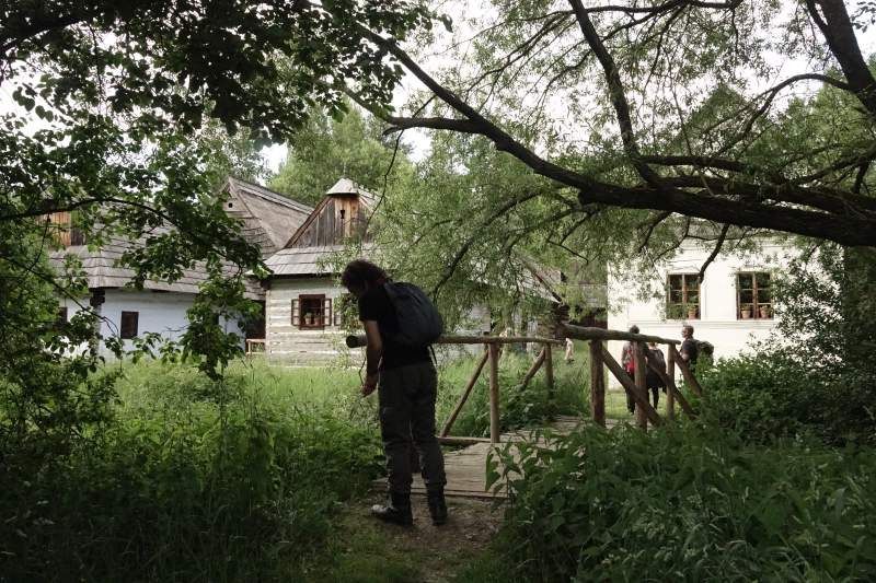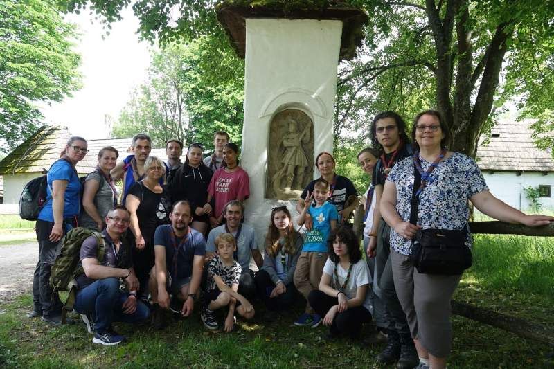 Ďalším bodom programu bola návšteva Múzea slovenskej dediny v Martine. Toto múzeum je najväčšou národopisnou expozíciou v prírode na Slovensku. Skanzen zobrazuje tradičné ľudové staviteľstvo bývania, hospodárskych budov a pod. Nachádza sa tu asi 150 stavieb z regiónov Orava, Turiec, Kysuce – Podjavorníky a Liptov. Niektoré budovy boli dobovo zariadené a sprístupnené. Najväčšiu radosť nám urobil sprístupnený objekt s názvom „Krčma“. Na chvíľu sme sa usadili pod košatú ľipu a občerstvili. Odtiaľ sme sa presunuli ku rímskokatolíckemu kostolu, preneseného do skanzenu z Rudna. Mali sme komentovanú prehliadku, ktorá ozrejmovala fakty. Najväčšiu radosť zo všetkých mali Omo a Andrej, lebo si zatočili na rapkáči, ktorý sa používal na zvolávanie veriacich počas veľkonočného pôstu.