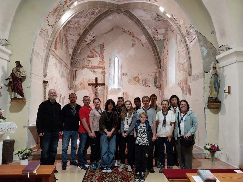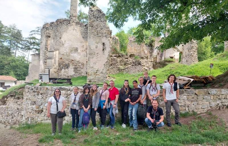 Nedeľa – Po raňajkách sme sa rozlúčili a pomaly sme sa vybrali domov. Časť išla na sv. omšu do historického kostolíka v Necpaloch, kde nás potešilo, že sv. omšu slúžil skautský kňaz Inky. Potom sme pokračovali na hrade Sklabiňa. Druhá časť si cestou pozrela Kremnicu.