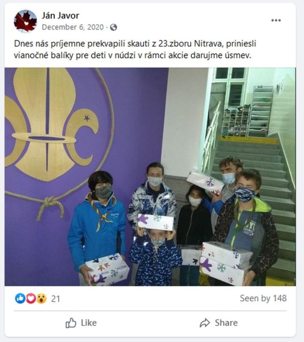 Predvianočná výzva, ktorá, ako veríme, priniesla radosť tým, ktorí potrebujú pomoc. Zapojili sme sa do rôznych skautských aj neskautských programov. Každý podľa svojho gusta.