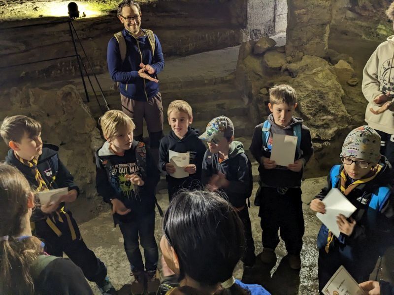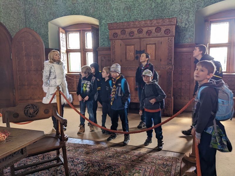 (25.3.2023 v Bojniciach) ZBOJNÍCI SI Z BOJNICKEJ JASKYNE ODNIESLI JASKYNIARA! Čo prosím? Nuž predsa: Zbojníci, teda naša družina vĺčat, si z Bojnickej zámockej jaskyne odniesli diplom o splnení vlčiackej odborky Jaskyniar.