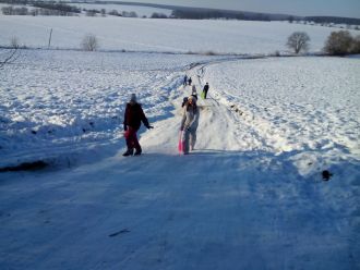 odmenení novou hobitskou nášivkou. Zima aj v novom roku bola na sneh najskôr veľmi skromná. Až jedného dňa, začal sneh padať a padať a napadalo ho toľko, že autá jazdili pomalšie a všetky deti sa mohli guľovať a stavať snehuliakov koľko chceli. My sme to využili na parádnu sánkovačku. Nielen na sánkach ale aj na boboch, klzákoch či na vreci sa super šmýkalo. Skončilo to niekedy až akrobatickým kotrmelcom ale deti sú ohybné ako gumkáči a tak sa nikomu nič nestalo. Všetci sme s červenými lícami od mrazu ale dobre vysánkovaní išli domov. Čaká nás ešte veľa rôznych akcií, výletov a výprav do